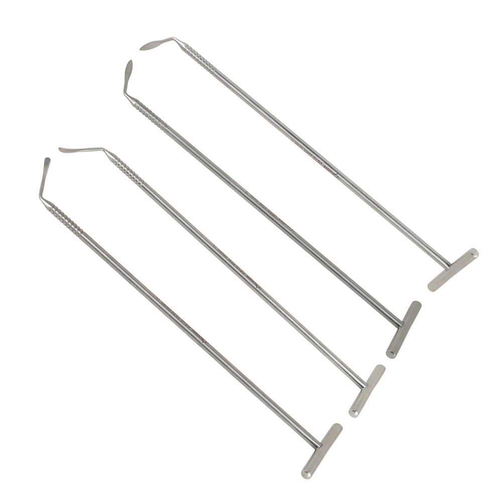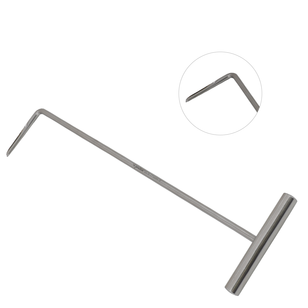 Equine Dental Elevator 90 Degree Angle Right 14" is used to remove tooth fragments of molars from sockets during advanced equine extraction procedures. It features a 90-degree thin, sharp tip with a T-shaped handle to ensure a more straightforward extraction procedure. Besides angle right, this equine instrument is also available in angle up, angle left, and angle right.