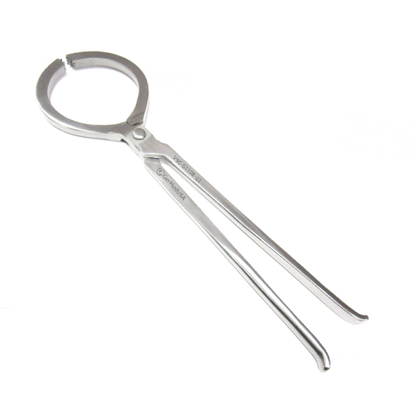 Serra Modified Emasculator 13.5" is a surgical instrument used during castration procedures to cut the spermatic cord and surrounding structures. This instrument prevents postoperative bleeding while detaching the male animal's testicles. Serrra Modified Emasculator is also available with a ratchet.