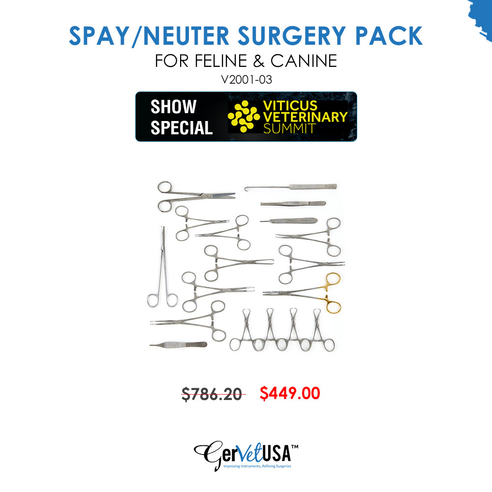 Are you looking for a flat discount on one of the most common surgical instruments? Here you go! GerVetUSA is offering a flat discount on Canine and Feline Spay packs used in routine spay/neuter surgery. This pack contains German stainless instruments that are color coated for easy identification.