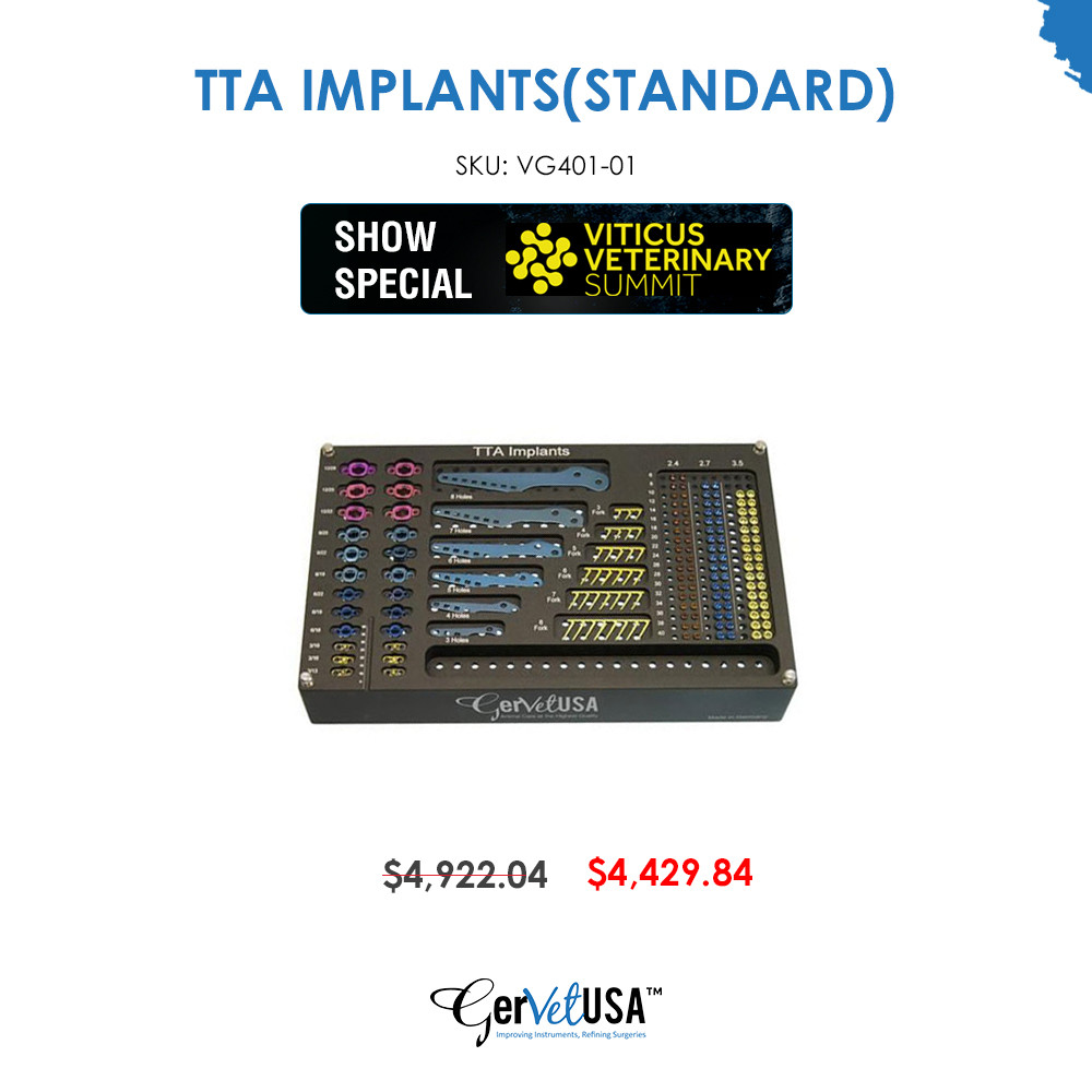 The infamous TTA implants used in the CCL repair are available at a very reasonable price for the show attendees. It is a one-time offer available only for the Viticus Veterinary Summit Participants.