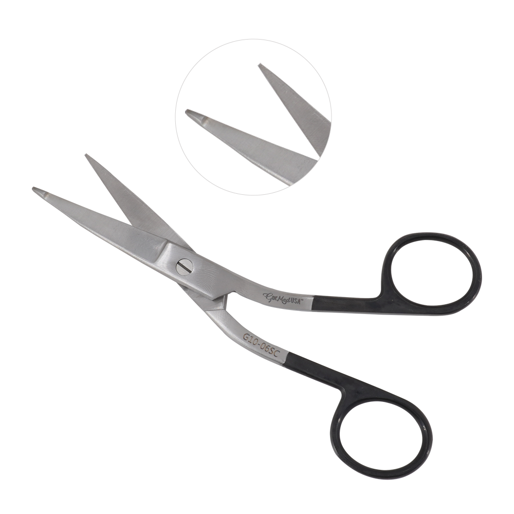 Hi-Level Bandage Scissors 5 1/2" SuperCut is a non-ratchet surgical instrument crafted for removing tight bandages from the patient's body. The inserts are razor-sharp, along with a knob on one blade. They are primarily found in first aid kits, hospitals, clinics, and all those places where bandage cutting is required. The angled shanks of these scissors facilitate efficient cutting of dressings.