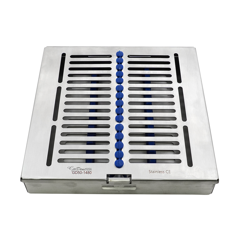 Sterilization Tray for Winged Elevator Holds up to 6 Elevators 5 1/2" x 7" x 1 3/4" is specially designed for arranging and sterilizing veterinary dental equipment efficiently. It can easily hold up to 6 elevators while sterilizing. This sterilization tray for winged elevators is made from high-grade German stainless steel. So, it is ideal for long-term use.
