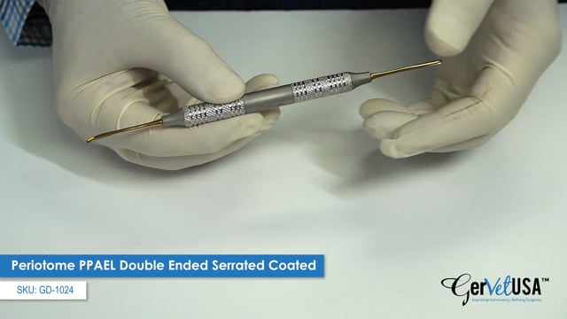 We offer multiple variations of our Double Ended Titanium Coated Serrated Periotome to meet the requirements of veterinary dental professionals. In addition, this instrument is: