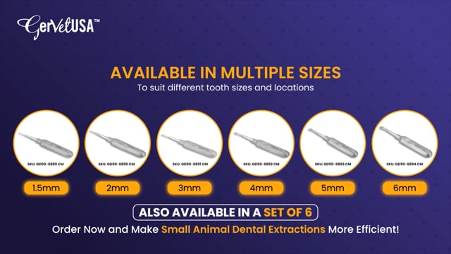 Our Luxating Curved 4 1/2" Mini Handle is available in varying tip sizes to meet the diverse needs of veterinary dentistry. The instrument’s comfortable mini handle ensures precise control and reduces hand fatigue for extended procedures.